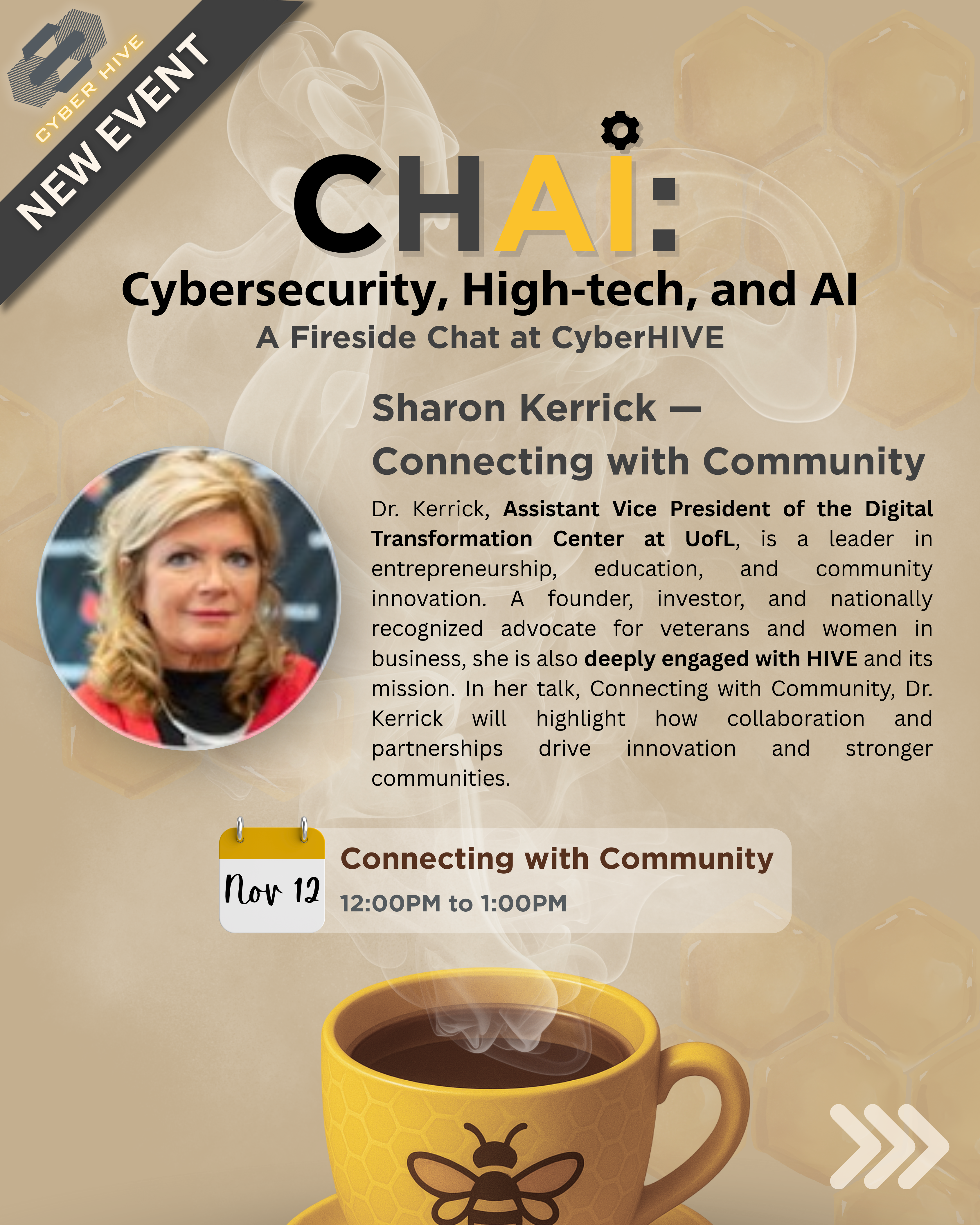 Dr. Kerrick, Assistant Vice President of the Digital Transformation Center at UofL, is a leader in entrepreneurship, education, and community innovation. A founder, investor, and nationally recognized advocate for veterans and women in business, she is also deeply engaged with HIVE and its mission. In her talk, Connecting with Community, Dr. Kerrick highlighted how collaboration and partnerships drive innovation and stronger communities.