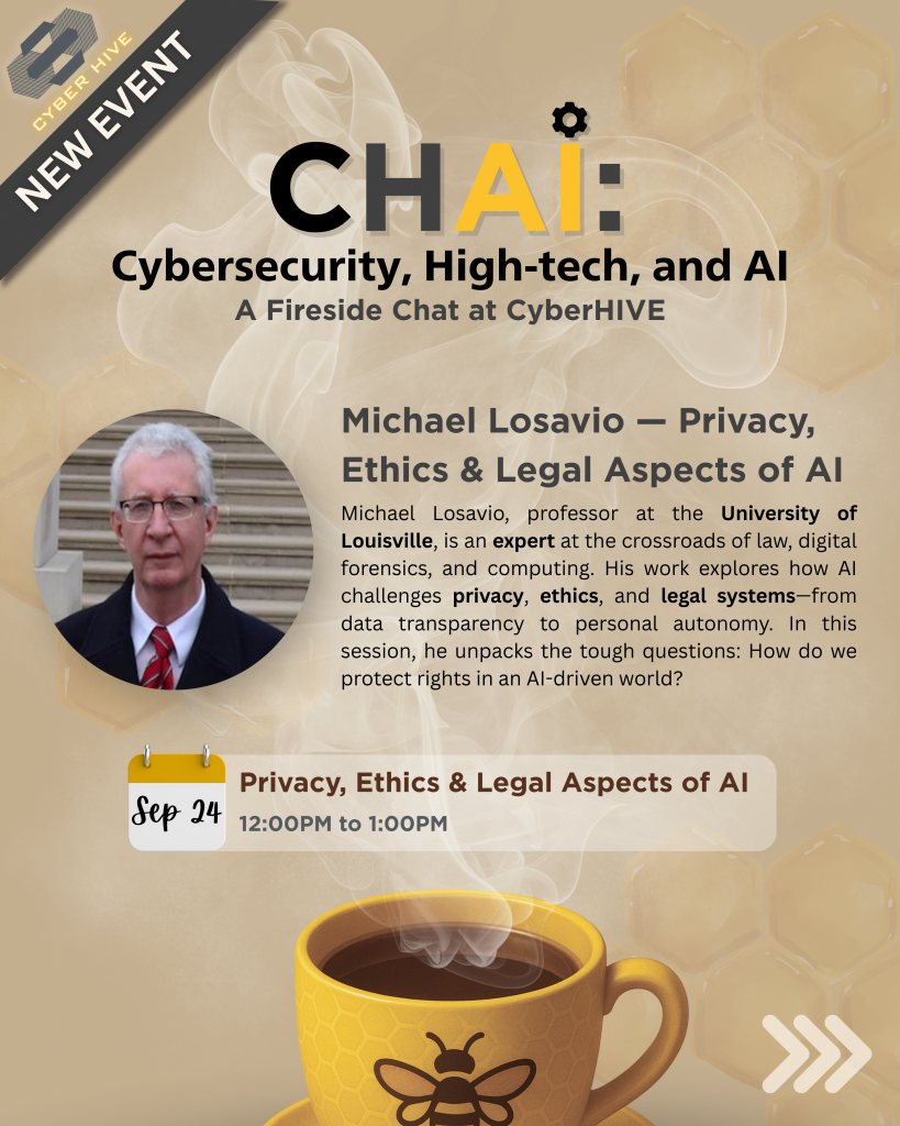 Michael Losavio, professor at the University of Louisville, is an expert at the crossroads of law, digital forensics, and computing. His work explores how AI challenges privacy, ethics, and legal systems, from data transparency to personal autonomy. In this session, he unpacked the tough questions: How do we protect rights in an AI-driven world?